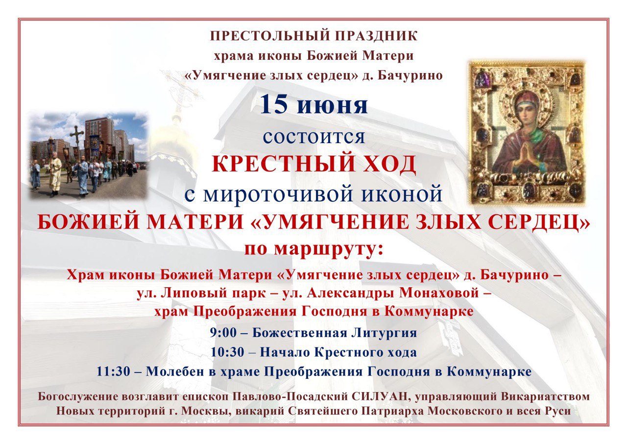 Крестный ход 15 июня с мироточивой иконой "Умягчение злых сердец" в д. Бачурино
